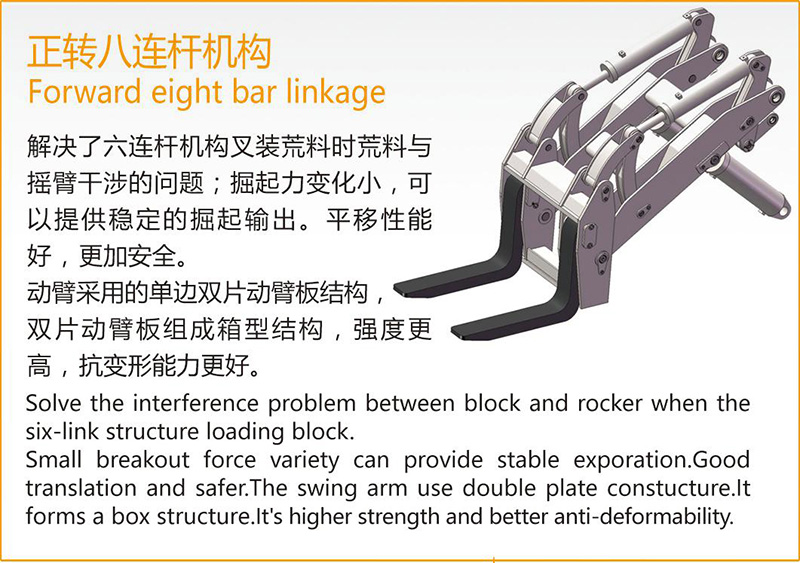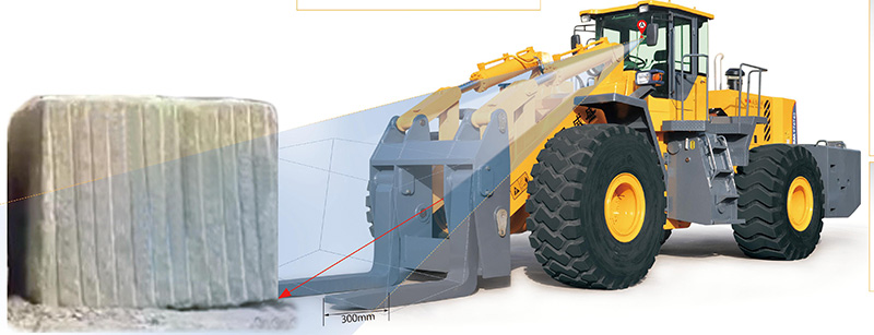 wheel loader WSM988T48  The driver A point is the height of 700mm away from the seat (normal sitting position). When the fork is horizontal, we can see the fork and fork tip fork into 300mm way.In the lifting process, the driver can see the tip and fork, it is safe to work. wheel loader WSM988T48